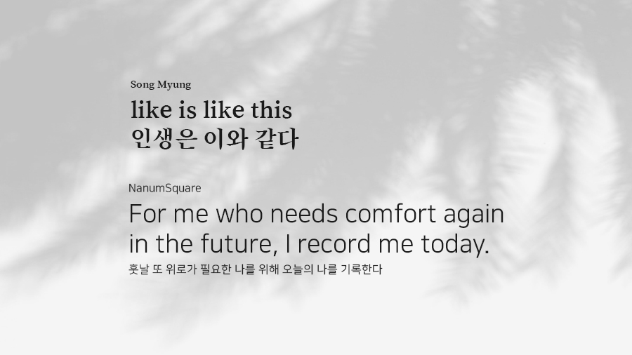 나눔스퀘어체 같은 경우, 평소에도 매우 좋아하는 고딕체 중에 하나로 가독성이 좋으면서도 예쁘다. 비록 웹폰트로는 지원이 되지 않지만, 어느 곳에서든 사용 가능하다는 장점을 가지고 있다.