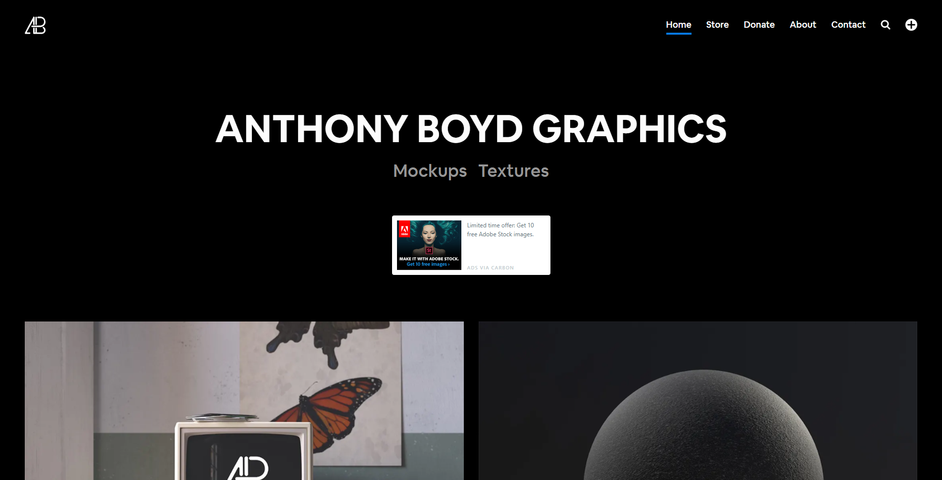 안소니 보이드 그래픽스는 목업 이미지를 공유하는 사이트이다. 이름에서도 느껴지겠지만, 안소니 보이드라는 디자이너가 운영하는 사이트인데, 심한 우울증으로 학교도 그만두고 스스로 목숨을 끊는 시도를 했지만 실패 후 인생에 다시 기회를 얻었다는 생각으로 3D에 올인했다고 한다. 그 후 3D 콘텐츠가 1000만 뷰를 넘고, 원하는 회사와 같이 작업도 할 수 있었다며 인생을 포기하지 말라고 한다. 그렇게 3D 목업 이미지를 무료로 공유하고 있다!