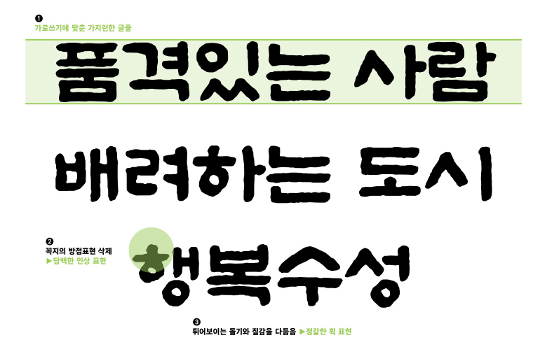 수성혜정체는 대구를 대표하는 서예가 혜정 류영희 선생님의 판본체를 기증받아서 제작한 폰트라고 한다. 초등학교 미술 시간 때 처음 서예 배울 때 판본체를 따라 썼던 기억이 나서 정이 갔다.
