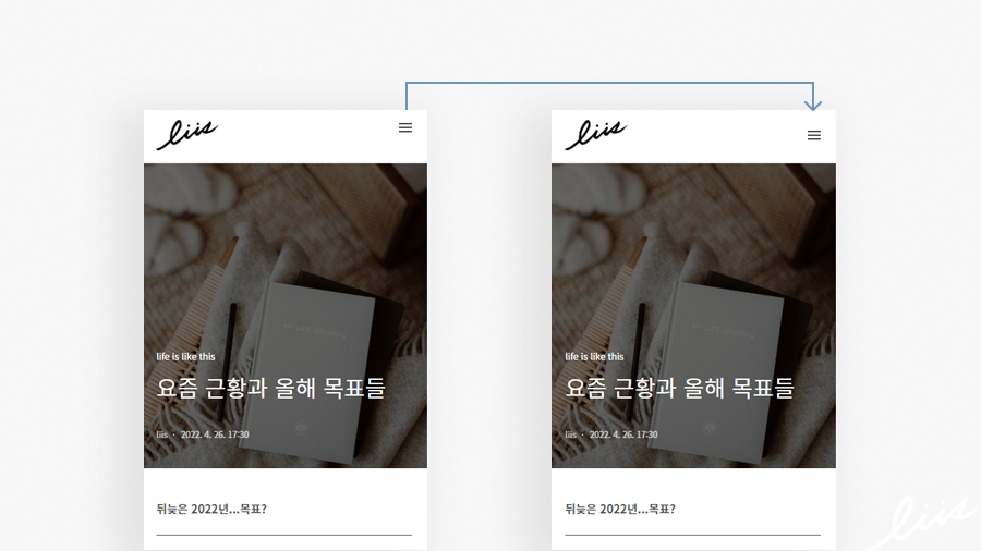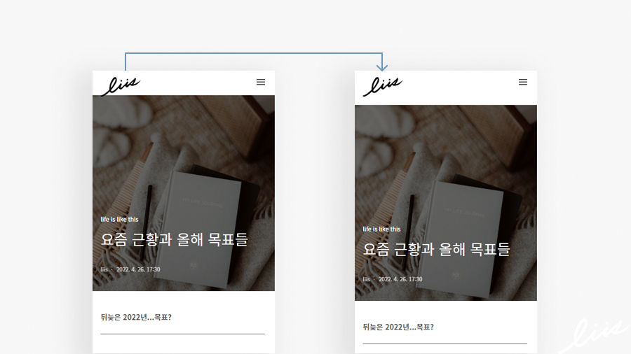 이렇게 로고의 크기를 바꾸면 모바일 화면에서는 로고가 아래 글 영역을 침범한다. 로고의 크기만큼 '헤더(header)'의 영역이 늘어나지 않기 때문에 헤더의 크기도 조정해줘야한다.