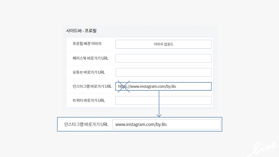 티스토리 블로그 '스킨 편집'에서 SNS 바로가기 URL을 'https://'까지 작성한 후,